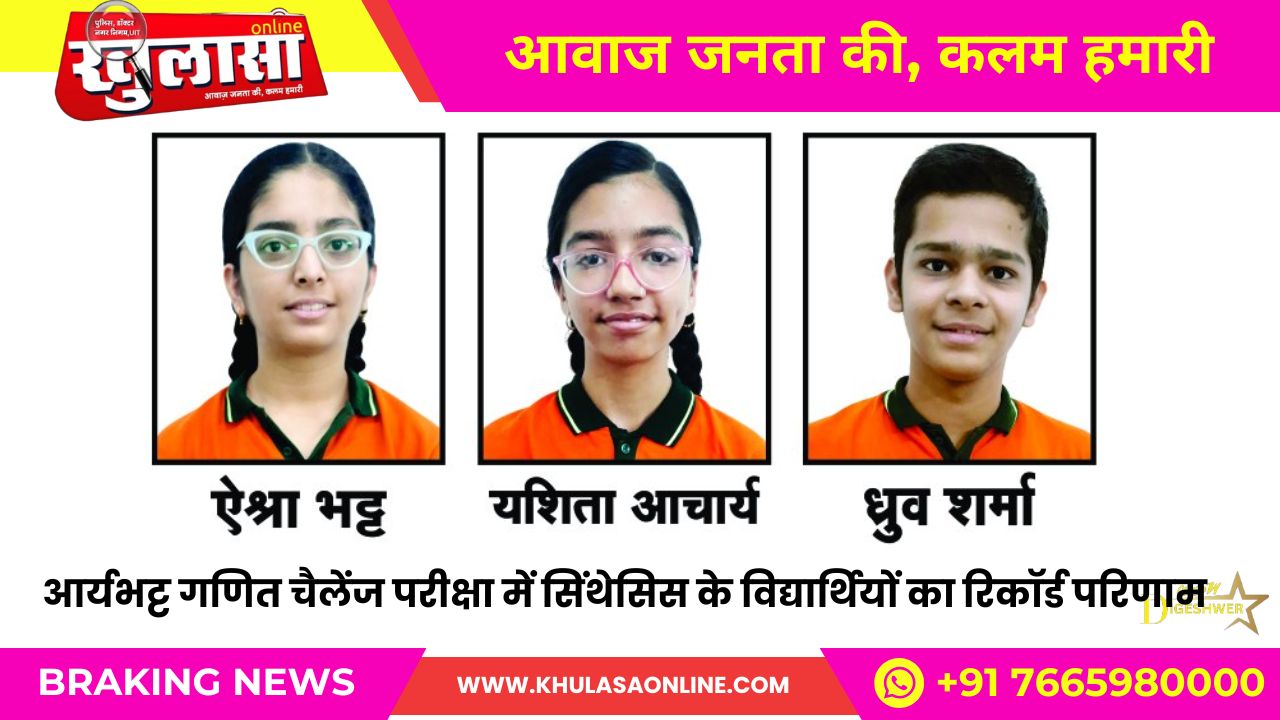 खुलासा न्यूज़। सिंथेसिस इंस्टीट्यूट की प्रीफाऊन्डेशन सीईओ कनिका बजाज ने बताया कि सीबीएसई द्वारा 10 नवंबर 2025 को नेशनल स्तर पर आर्या भट्ट गणित चैलेंज परीक्षा आयोजित कि गई जिसमें संस्थान के कक्षा 10वीं से ऐश्रा भट्ट,यशिता आचार्य और ध्रुव शर्मा ने द्वितीय लेवल में टॉप 100 विद्यार्थियों में रैंक अर्जित की।