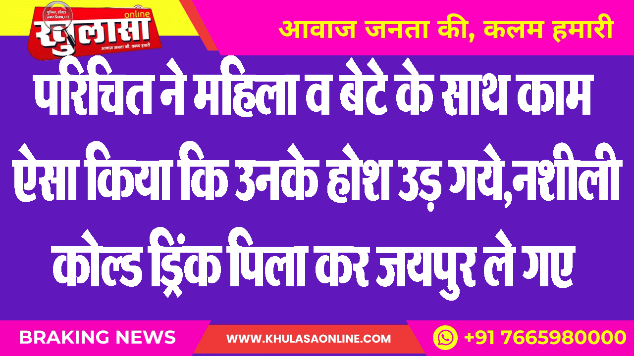 परिचित ने महिला व बेटे के साथ काम ऐया किया कि उनके होश उड़ गये,नशीली कोल्ड ड्रिंक पिला कर जयपुर ले गए
