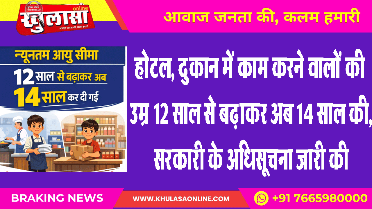 होटल, दुकान में काम करने वालों की उम्र 12 साल से बढ़ाकर अब 14 साल की, सरकारी के अधिसूचना जारी की