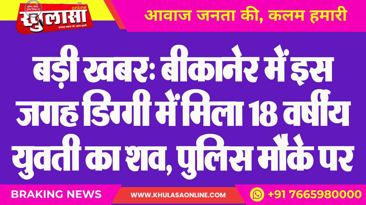 बड़ी खबर: बीकानेर में इस जगह डिग्गी में मिला 18 वर्षीय युवती का शव, पुलिस मौके पर