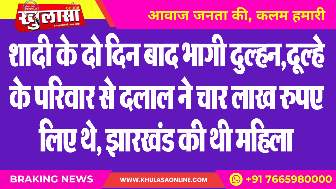 शादी के दो दिन बाद भागी दुल्हन,दूल्हे के परिवार से दलाल ने चार लाख रुपए लिए थे, झारखंड की थी महिला