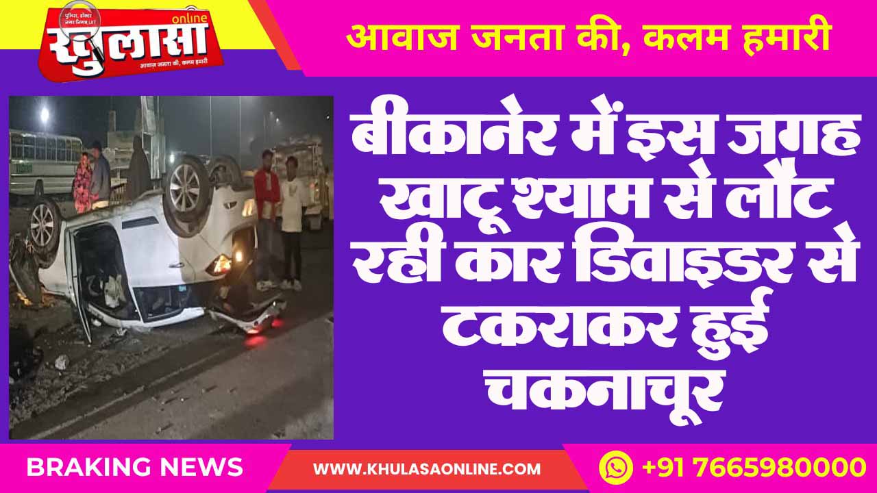 बीकानेर में इस जगह खाटू श्याम से लौट रही कार डिवाइडर से टकराकर हुई चकनाचूर