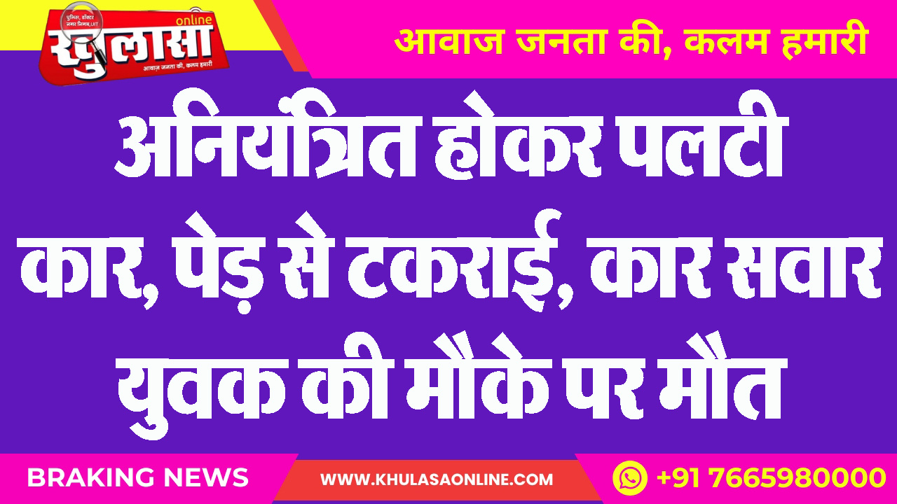 अनियंत्रित होकर पलटी कार, पेड़ से टकराई, कार सवार युवक की मौके पर मौत