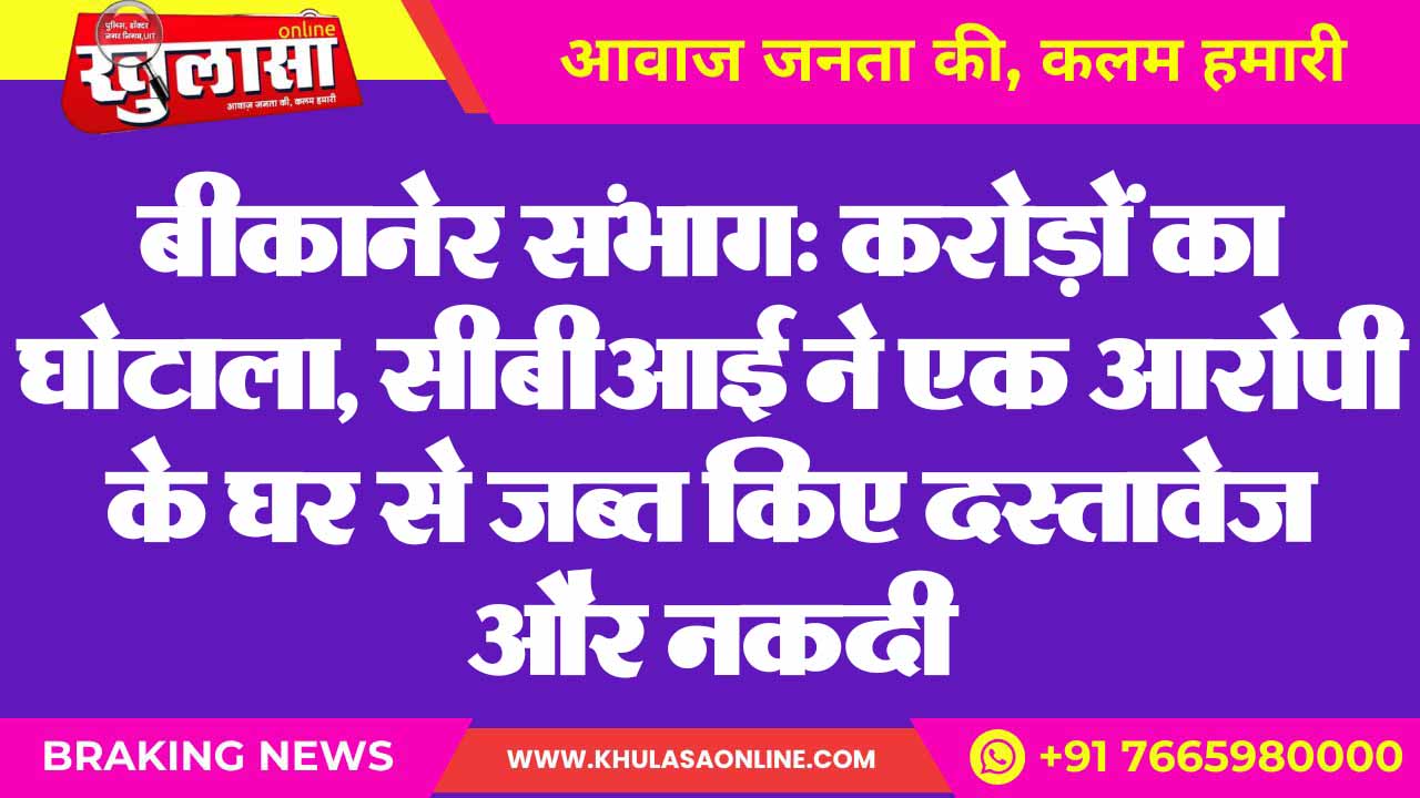 बीकानेर संभाग: करोड़ों का घोटाला, सीबीआई ने एक आरोपी के घर से जब्त किए दस्तावेज और नकदी