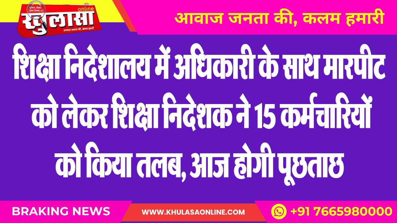 शिक्षा निदेशालय में अधिकारी के साथ मारपीट को लेकर शिक्षा निदेशक ने 15 कर्मचारियों को किया तलब, आज होगी पूछताछ