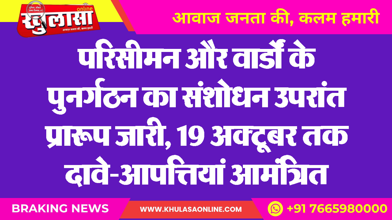 परिसीमन और वार्डों के पुनर्गठन का संशोधन उपरांत प्रारूप जारी, 19 अक्टूबर तक दावे-आपत्तियां आमंत्रित