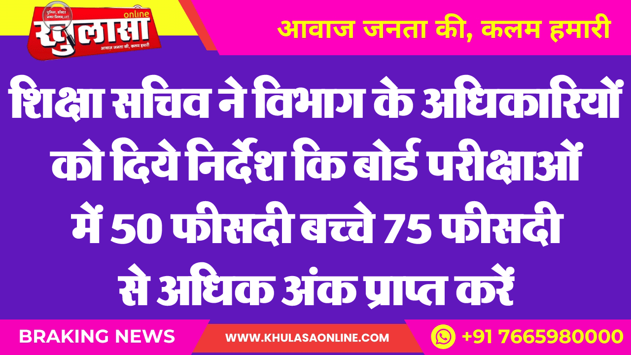 शिक्षा सचिव ने विभाग के अधिकारियों को दिये निर्देश कि बोर्ड परीक्षाओं में 50 फीसदी बच्चे 75 फीसदी से अधिक अंक प्राप्त करें