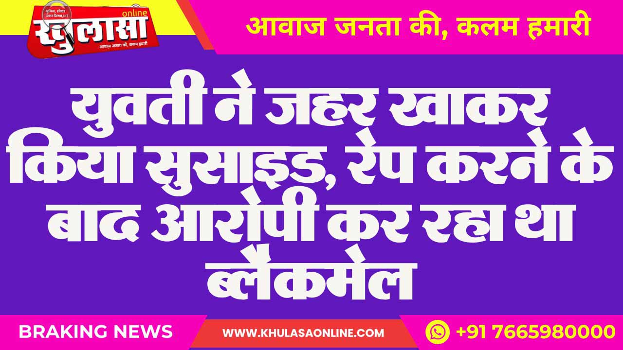 युवती ने जहर खाकर किया सुसाइड, रेप करने के बाद आरोपी कर रहा था ब्लैकमेल