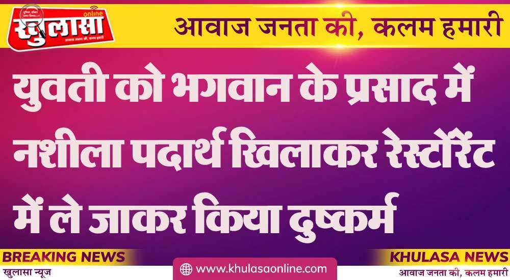 युवती को भगवान के प्रसाद में नशीला पदार्थ खिलाकर रेस्टोंरेंट में ले जाकर किया दुष्कर्म