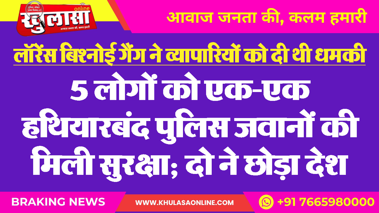 लॉरेंस बिश्नोई गैंग ने व्यापारियों को दी थी धमकी, 5 लोगों को एक-एक हथियारबंद पुलिस जवानों की मिली सुरक्षा; दो ने छोड़ा देश