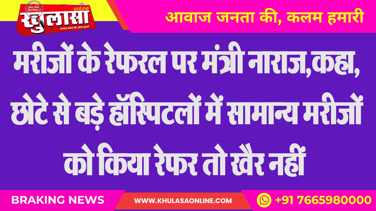 मरीजों के रेफरल पर मंत्री नाराज,कहा, छोटे से बड़े हॉस्पिटलों में सामान्य मरीजों को किया रेफर तो खैर नहीं