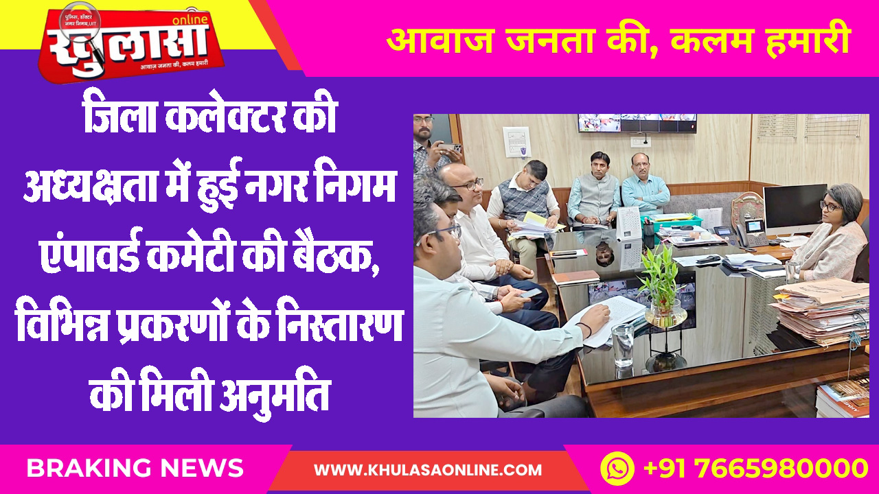 जिला कलेक्टर की अध्यक्षता में हुई नगर निगम एंपावर्ड कमेटी की बैठक, विभिन्न प्रकरणों के निस्तारण की मिली अनुमति