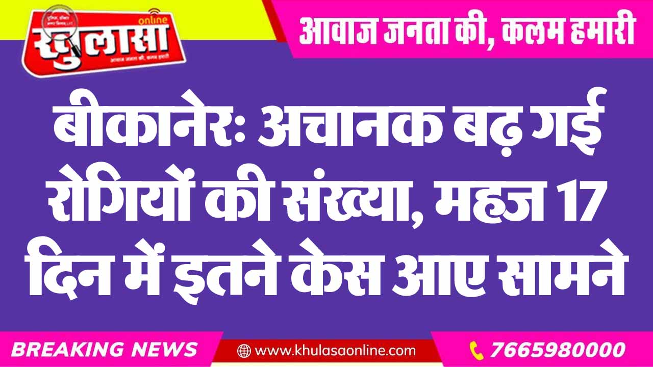बीकानेर: अचानक बढ़ गई रोगियों की संख्या, महज 17 दिन में इतने केस आए सामने
