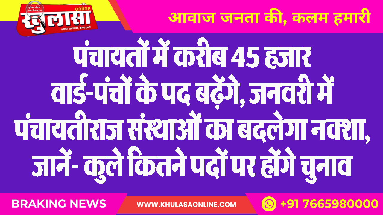 पंचायतों में करीब 45 हजार वार्ड-पंचों के पद बढ़ेंगे, जनवरी में पंचायतीराज संस्थाओं का बदलेगा नक्शा, जानें- कुले कितने पदों पर होंगे चुनाव