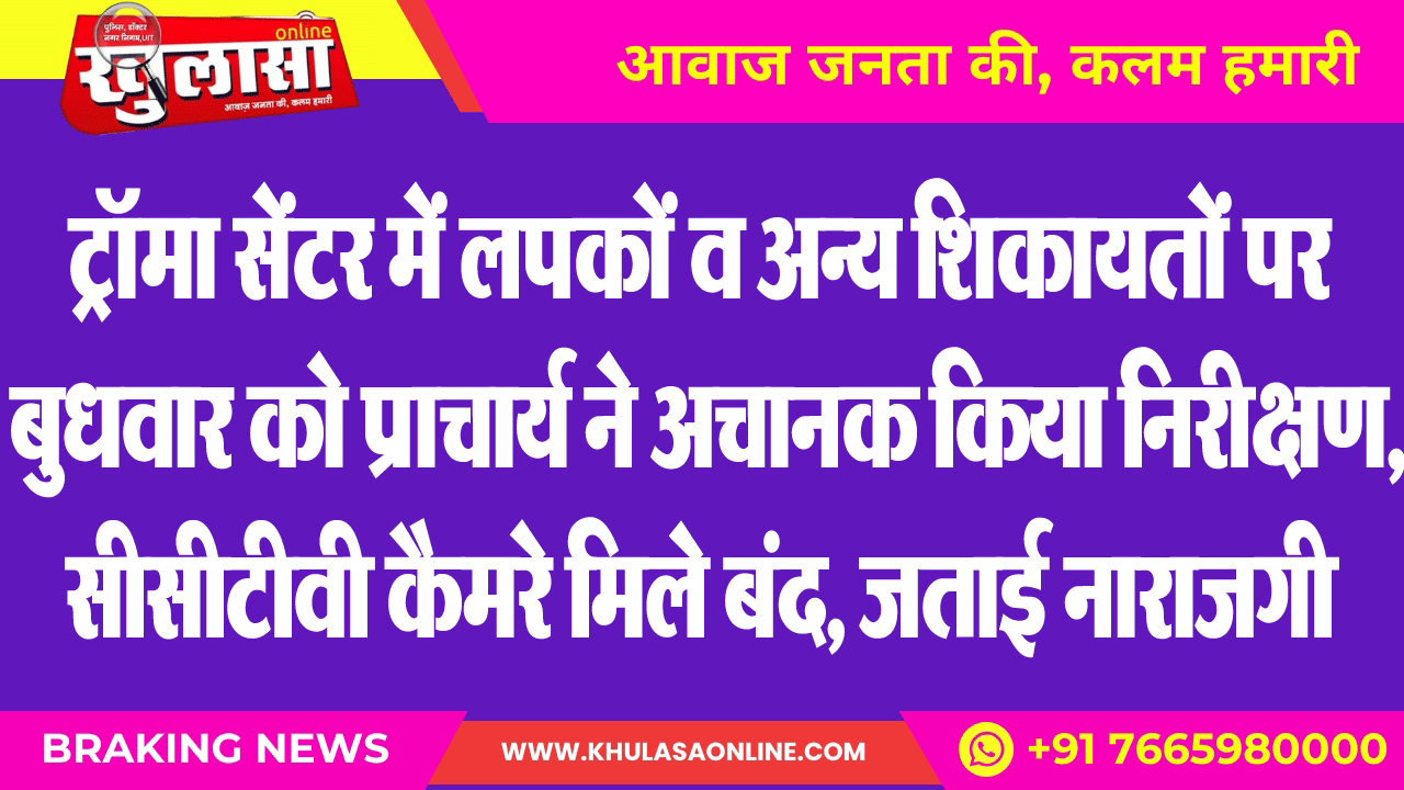 ट्रॉमा सेंटर में लपकों व अन्य शिकायतों पर बुधवार को प्राचार्य ने अचानक किया निरीक्षण, सीसीटीवी कैमरे मिले बंद, जताई नाराजगी