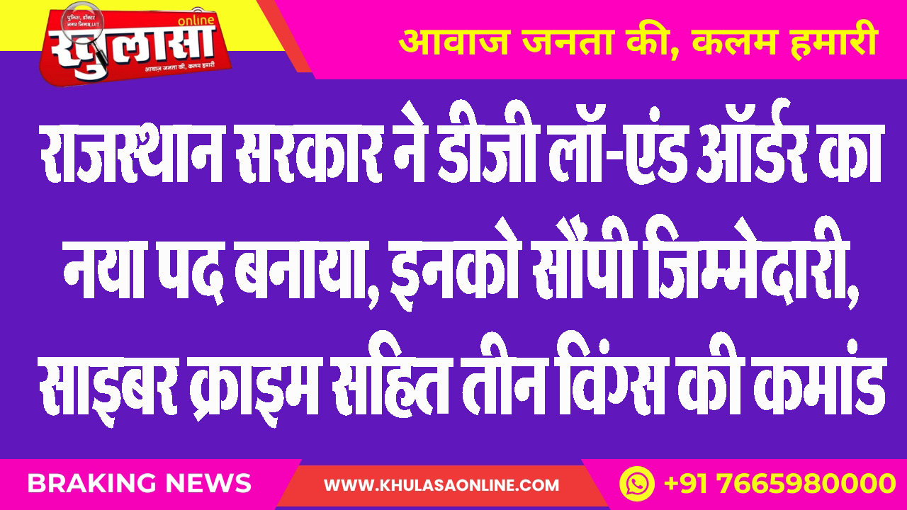 राजस्थान सरकार ने डीजी लॉ-एंड ऑर्डर का नया पद बनाया, इनको सौंपी जिम्मेदारी, साइबर क्राइम सहित तीन विंग्स की कमांड