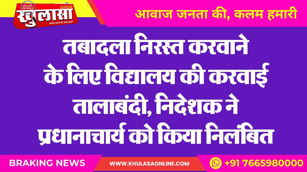 तबादला निरस्त करवाने के लिए विद्यालय की करवाई तालाबंदी, निदेशक ने प्रधानाचार्य को किया निलंबित