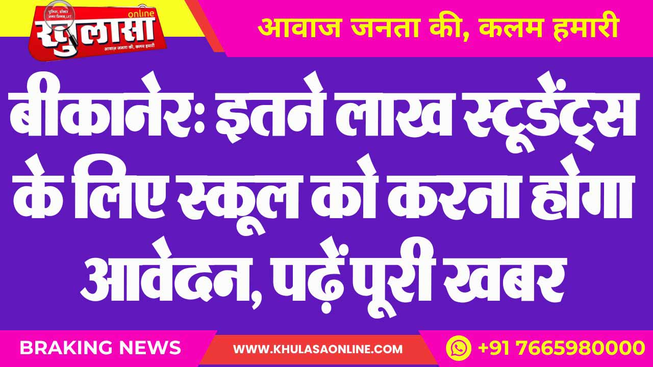 बीकानेर: इतने लाख स्टूडेंट्स के लिए स्कूल को करना होगा आवेदन, पढ़ें पूरी खबर