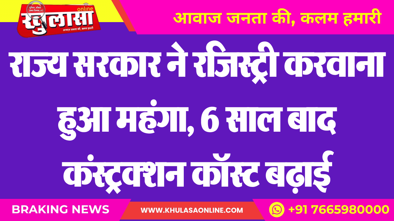 राज्य सरकार ने रजिस्ट्री करवाना हुआ महंगा, 6 साल बाद कंस्ट्रक्शन कॉस्ट बढ़ाई