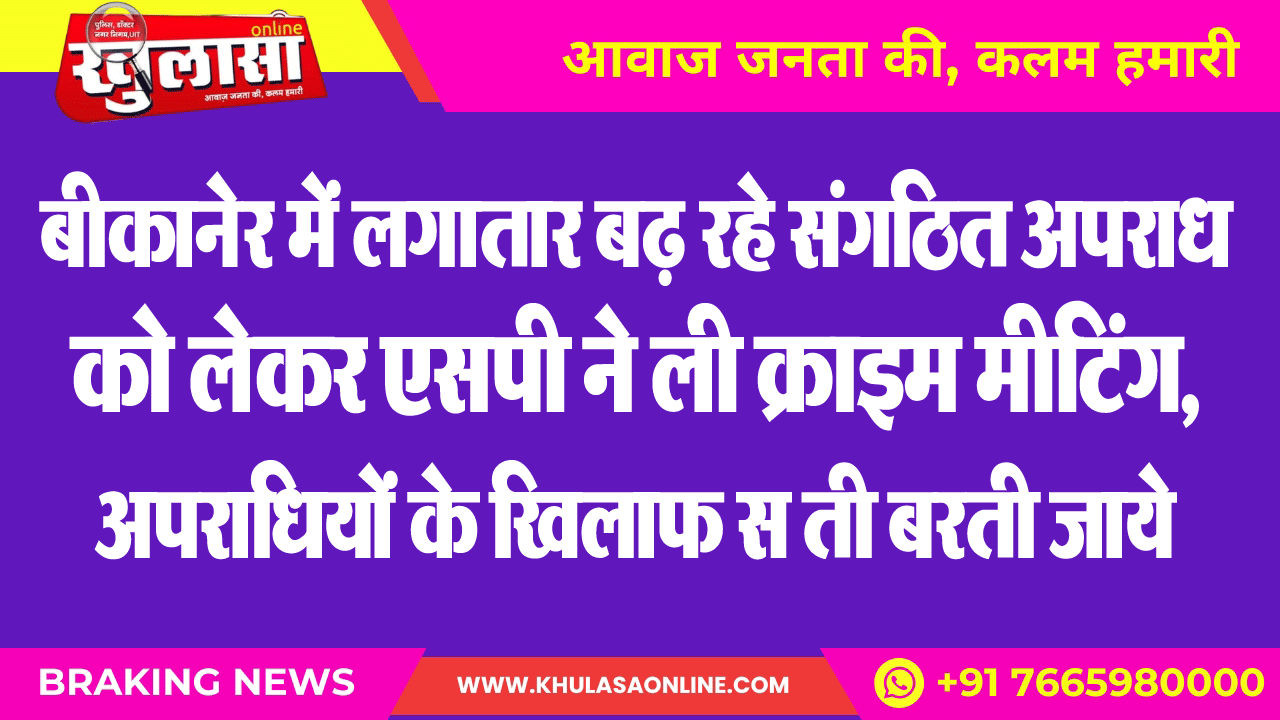 बीकानेर में लगातार बढ़ रहे संगठित अपराध को लेकर एसपी ने ली क्राइम मीटिंग, अपराधियों के खिलाफ सख्ती बरती जाये