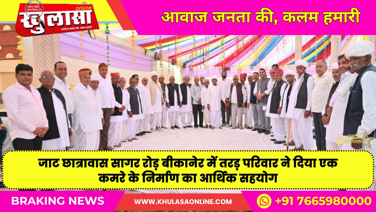 जाट छात्रावास सागर रोड़ बीकानेर में तरड़ परिवार ने दिया एक कमरे के निर्माण का आर्थिक सहयोग