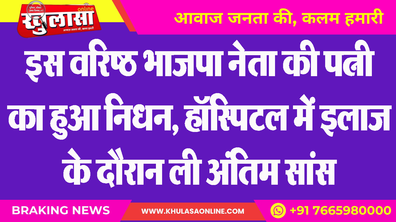 इस वरिष्ठ भाजपा नेता की पत्नी का हुआ निधन, हॉस्पिटल में इलाज के दौरान ली अंतिम सांस