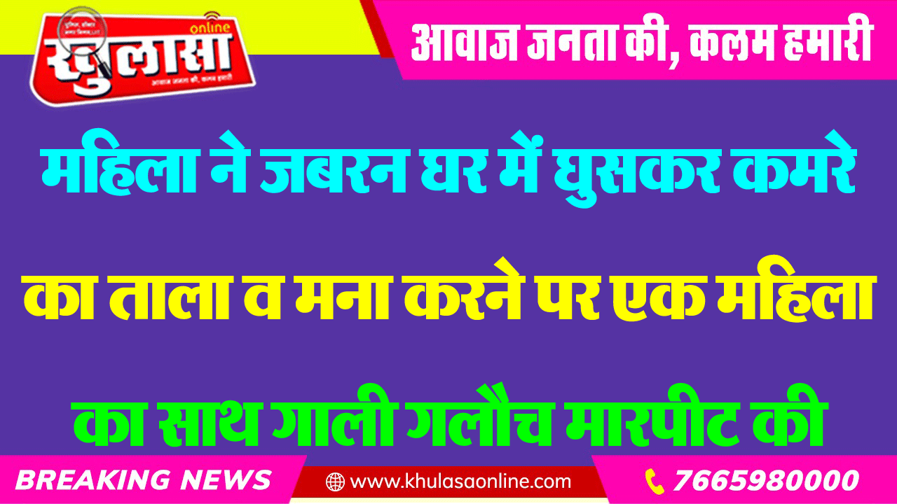 महिला ने जबरन घर में घुसकर कमरे का ताला व मना करने पर एक महिला का साथ गाली गलौच मारपीट की