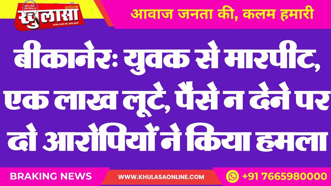 बीकानेर: युवक से मारपीट, एक लाख लूटे, पैसे न देने पर दो आरोपियों ने किया हमला