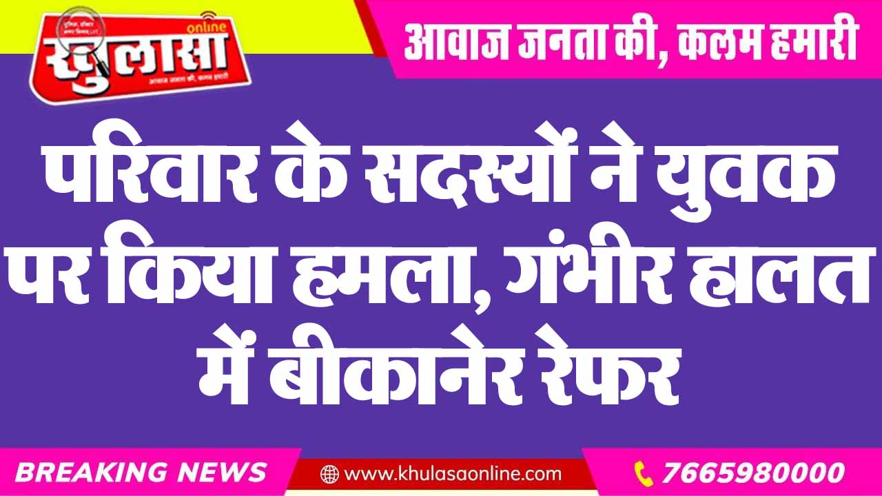 परिवार के सदस्यों ने युवक पर किया हमला, गंभीर हालत में बीकानेर रेफर