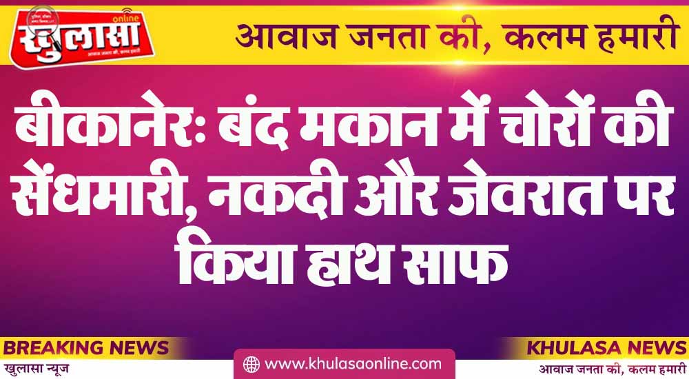 बीकानेर: बंद मकान में चोरों की सेंधमारी, नकदी और जेवरात पर किया हाथ साफ