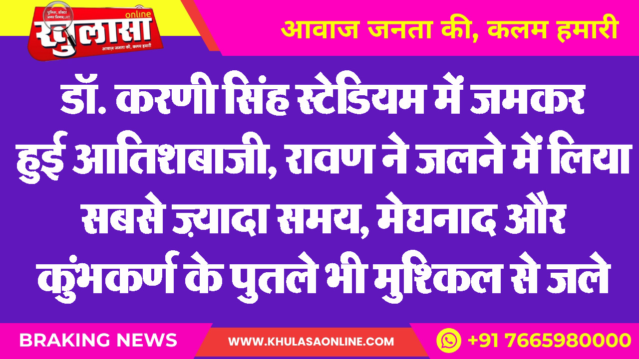 डॉ. करणी सिंह स्टेडियम में जमकर हुई आतिशबाजी, रावण ने जलने में लिया सबसे ज़्यादा समय, मेघनाद और कुंभकर्ण के पुतले भी मुश्किल से जले