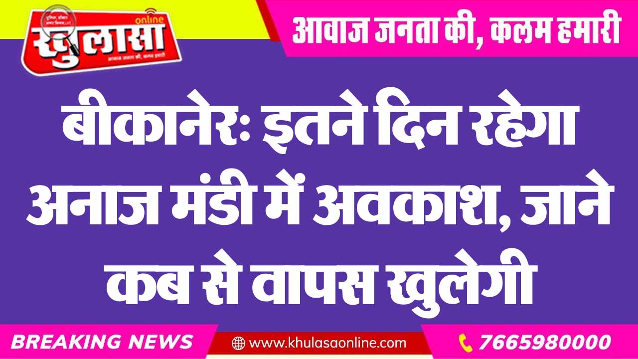 बीकानेर: इतने दिन रहेगा अनाज मंडी में अवकाश, जाने कब से वापस खुलेगी