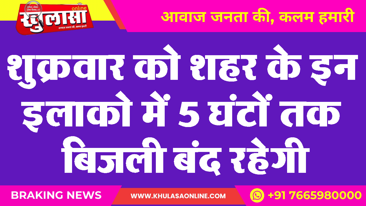 शुक्रवार को शहर के इन इलाको में 5 घंटों तक बिजली बंद रहेगी