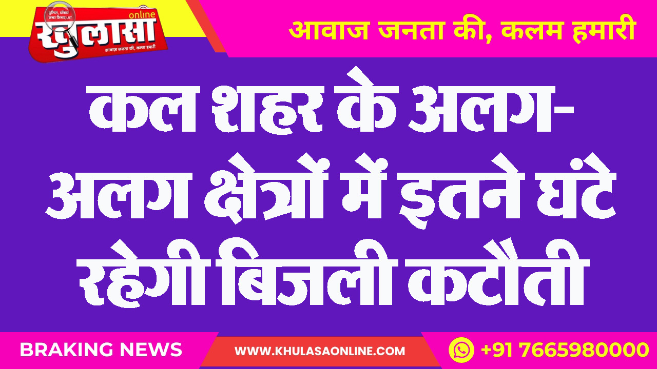 कल शहर के अलग-अलग क्षेत्रों में इतने घंटे रहेगी बिजली कटौती