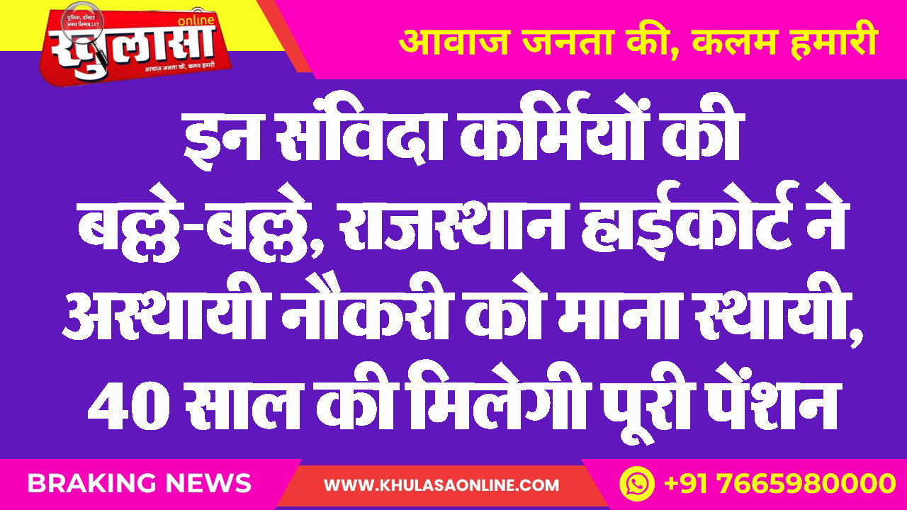 इन संविदा कर्मियों की बल्ले-बल्ले, राजस्थान हाईकोर्ट ने अस्थायी नौकरी को माना स्थायी, 40 साल की मिलेगी पूरी पेंशन
