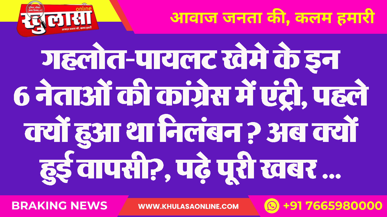 गहलोत-पायलट खेमे के इन 6 नेताओं की कांग्रेस में एंट्री, पहले क्यों हुआ था निलंबन? अब क्यों हुई वापसी?, पढ़े पूरी खबर …