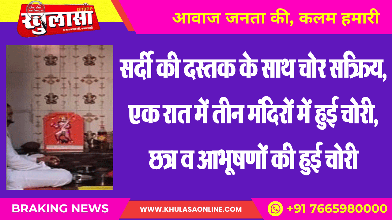 सर्दी की दस्तक के साथ चोर सक्रिय,एक रात में तीन मंदिरों में हुई चोरी, छत्र व आभूषणों की हुई चोरी