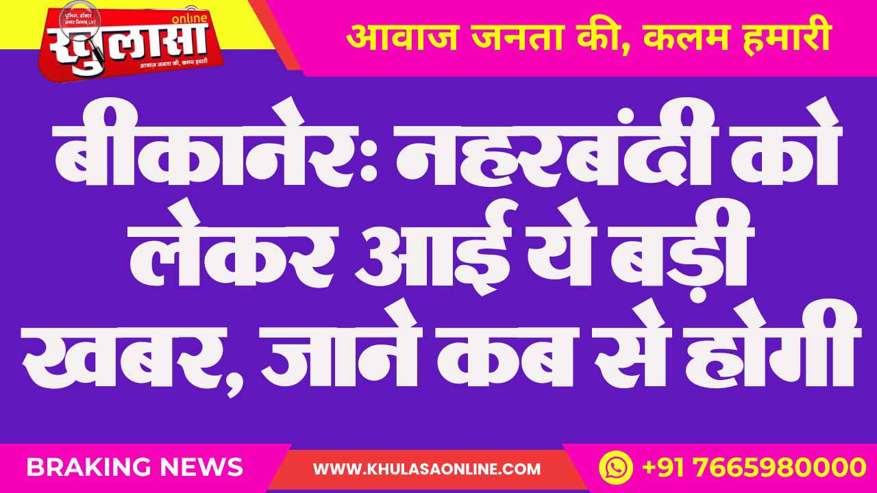 बीकानेर: नहरबंदी को लेकर आई ये बड़ी खबर, जाने कब से होगी