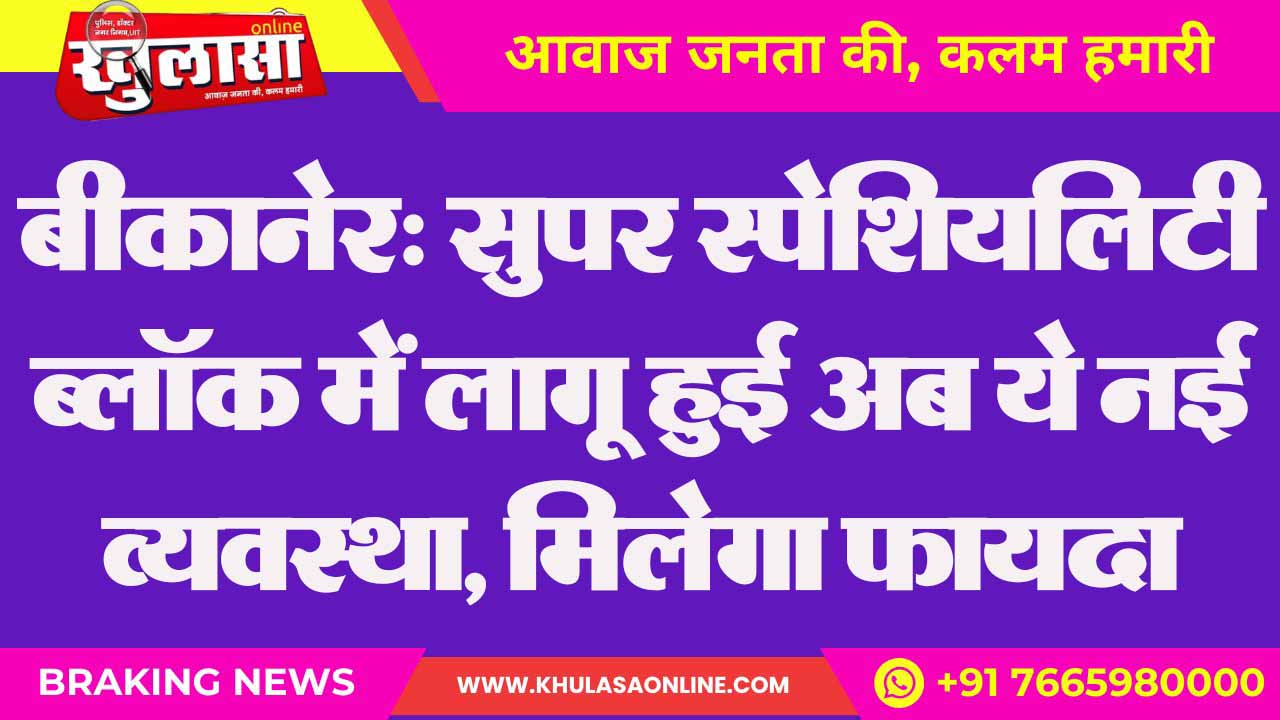 बीकानेर: सुपर स्पेशियलिटी ब्लॉक में लागू हुई अब ये नई व्यवस्था, मिलेगा फायदा