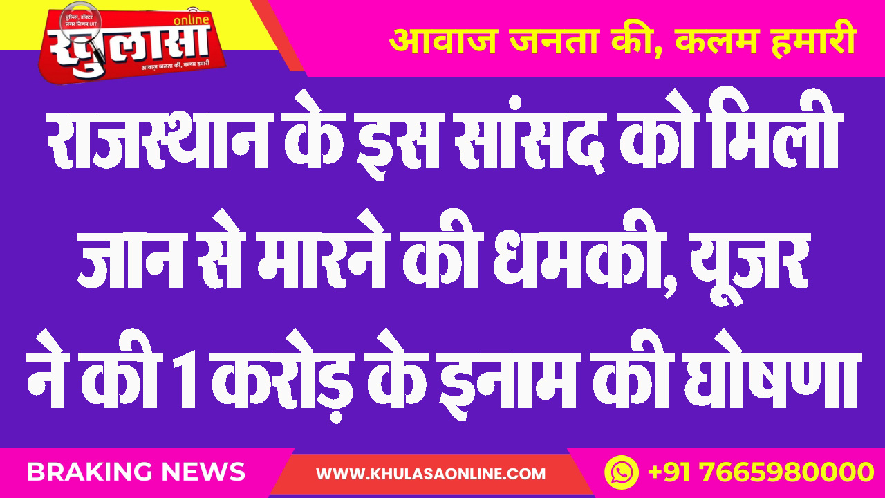 राजस्थान के इस सांसद को मिली जान से मारने की धमकी, यूजर ने की 1 करोड़ के इनाम की घोषणा