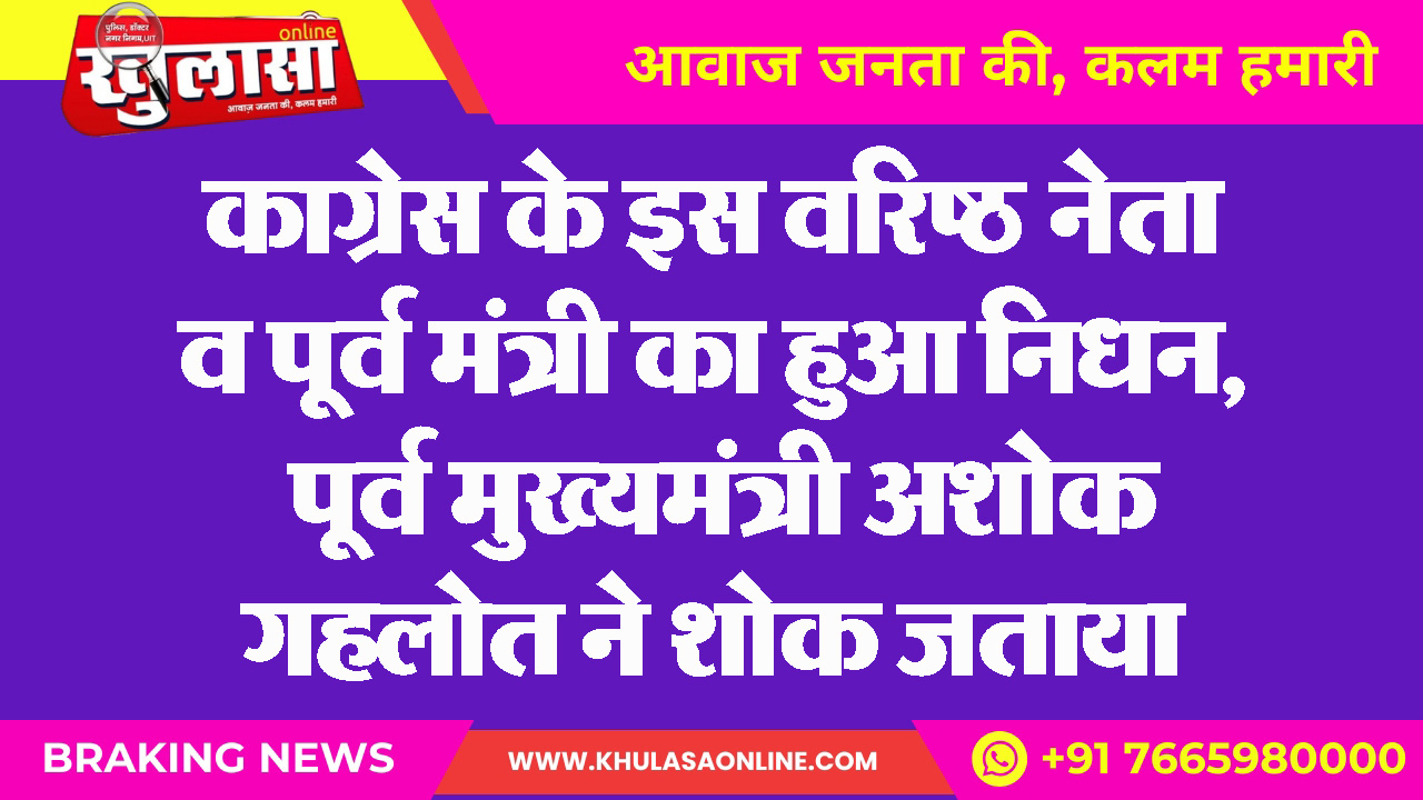 काग्रेस के इस वरिष्ठ नेता व पूर्व मंत्री का हुआ निधन, पूर्व मुख्यमंत्री अशोक गहलोत ने शोक जताया