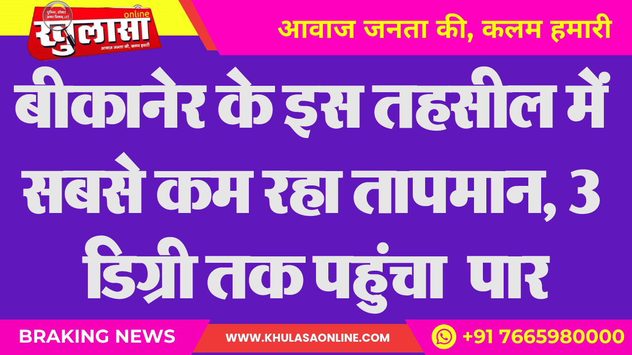 बीकानेर के इस तहसील में सबसे कम रहा तापमान, 3 डिग्री तक पहुंचार पार