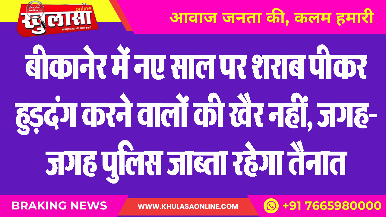 बीकानेर में नए साल पर शराब पीकर हुड़दंग करने वालों की खैर नहीं, जगह-जगह पुलिस जाब्ता रहेगा तैनात