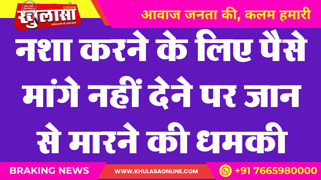 नशा करने के लिए पैसे मांगे नहीं देने पर जान से मारने की धमकी