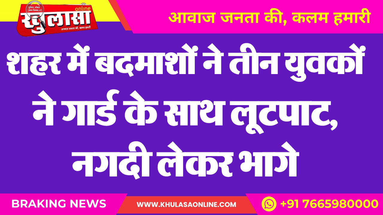 शहर में बदमाशों ने तीन युवकों ने गार्ड के साथ लूटपाट, नगदी लेकर भागे