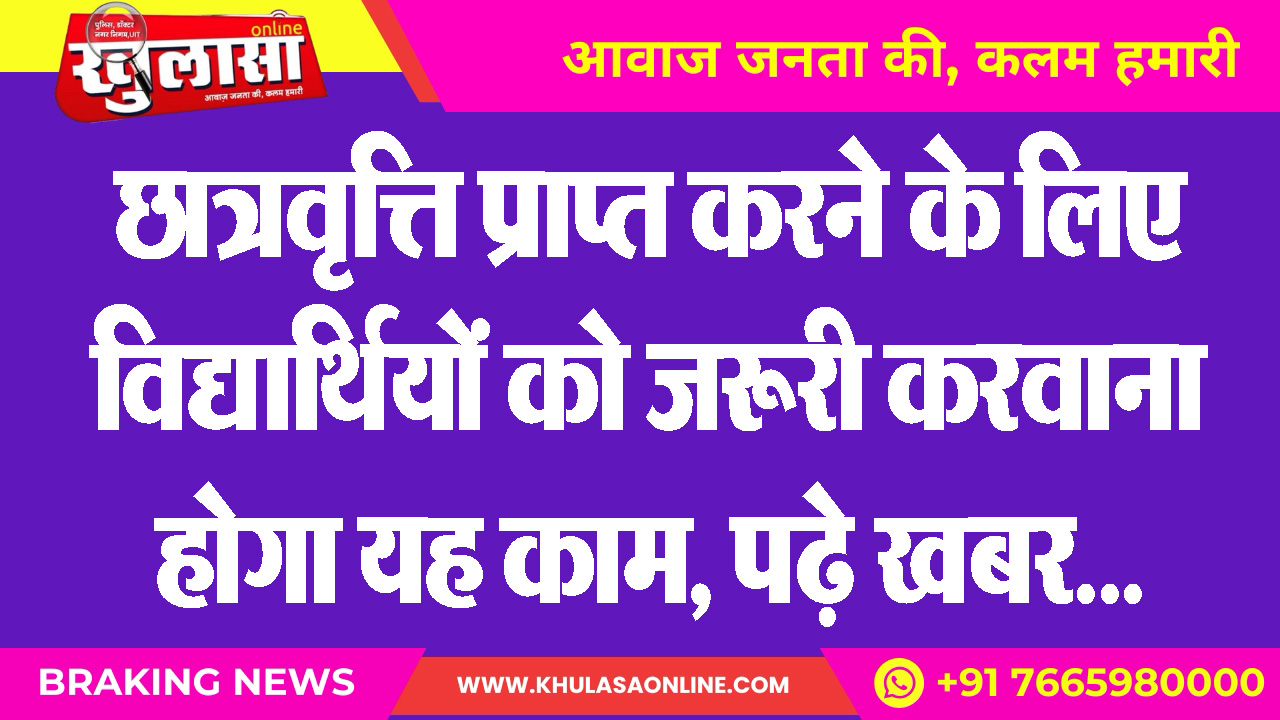 छात्रवृत्ति प्राप्त करने के लिए विद्यार्थियों को जरूरी करवाना होगा यह काम, पढ़े खबर…
