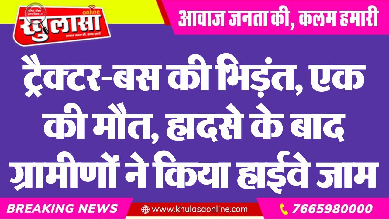 ट्रैक्टर-बस की भिड़ंत, एक की मौत, हादसे के बाद ग्रामीणों ने किया हाईवे जाम