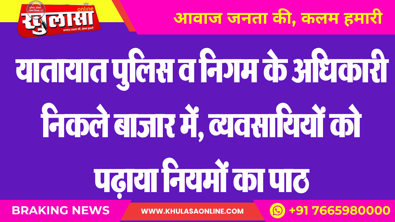 यातायात पुलिस व निगम के अधिकारी निकले बाजार में, व्यवसायियों को पढ़ाया नियमों का पाठ