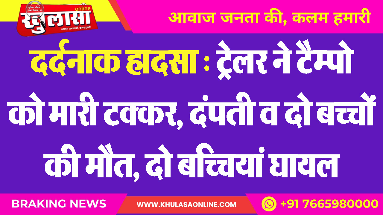 दर्दनाक हादसा : ट्रेलर ने टैम्पो को मारी टक्कर, दंपती व दो बच्चों की मौत, दो बच्चियां घायल
