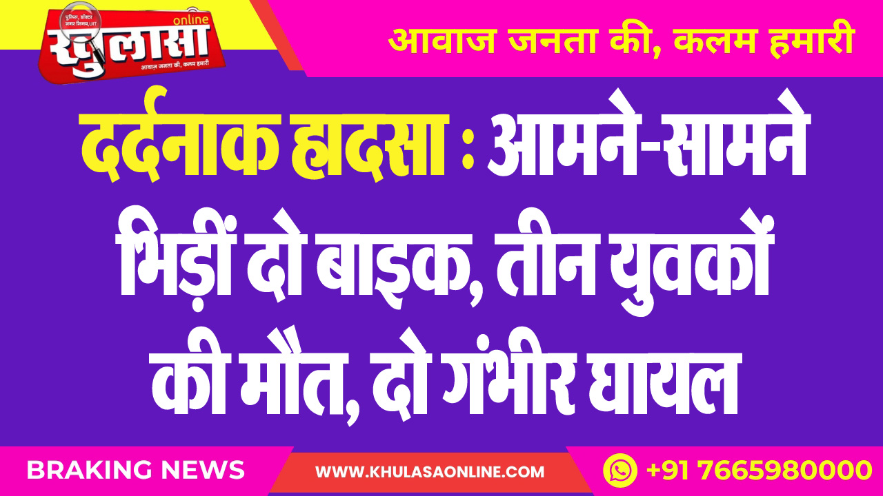 दर्दनाक हादसा : आमने-सामने भिड़ीं दो बाइक, तीन युवकों की मौत, दो गंभीर घायल
